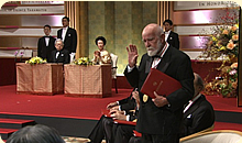 優れた業績を上げた芸術家たちに贈られる高松宮殿下記念世界文化賞。今年で26回目となる授賞式典が10月15日、秋雨の降る中、常陸宮殿下と同妃殿下をお迎えして東京・元赤坂の明治記念館で行われました。そして、受賞者を推薦した6人の国際顧問が見守る中、常陸宮殿下より、記念のメダルが授与されたのです。