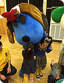 保育園からは0歳児のお子さんも参加していて、ラフ君とふくたんの大きさに先生にしがみついてしまう子もいましたが、ラフ君とふくたん、交互にハグしたり、握手したりと大繁盛!!