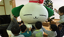 広野町保育所の子どもたちも合流して、いよいよクリスマス会!ラフ君と福島テレビの福袋キャラのふくたんという“ビッグなおともだち"登場に子どもたちの目がキラキラ。いや、一部の子どもたちの目はギラギラ。