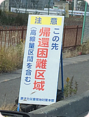広野町から川内村への道すがら、「ここから先、帰宅困難区域」の看板をいくつか見かけました。今回の道中、作業着姿の男性は多く見かけましたが、女性と子どもは、あまり目にすることはなかった気がします。