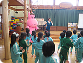 最初に訪れた「みどり幼稚園」では、58人の園児たちが元気に出迎えてくれました。