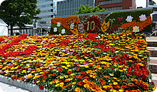 緑化普及のためのイベントでもある「こうち春花まつり」は、今年で10回目。会場となる高知市中央公園が40,000鉢の花々で彩られ、たくさんの人でにぎわっていました。