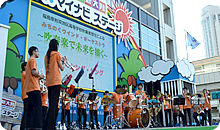今回は、上京してサントリーホールで演奏した後、「震災で多くの人たちに助けてもらった感謝の気持ちを表したい」とのことで、およそ50人がイベント内のマイナビステージに出演。
