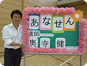 まず自己紹介から。どうやってアナウンサーになったのか、私自身が小さい頃から考えた事、やったことを、子どもたちと同じ年代の頃の写真を私は実家にあった古いアルバムを探して、体育館のステージ上にあるスクリーンに大きく映し出して、子どもたちに見てもらいながら話をしました。