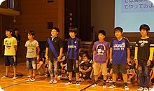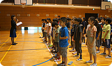 私が伺った翌々日に、来年度の新一年生の保護者向けに体育館で学校の活動を紹介する「かけあい」をする、とのこと。「かけあい」では、一人一言ずつ、必ずセリフがあります。
