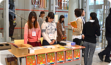 会場入口の学生ボランティア 5回目となる今年も6つの大学(日本映画大学、多摩美術大学、東京工芸大学、日本大学、武蔵野美術大学、早稲田大学)が参加し、11月9日にフジテレビ1階のマルチシアターで学生の卒業制作など7作品が上映されました。