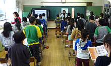 足立区立栗島小学校の5年1組と2組でそれぞれ音読の授業を行いました。