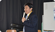 自分なりに考えた話し上手のコツを、大きなスクリーンで紹介しながら。子どもたちと、発声練習をやったり、早口言葉あそびのようなことをやったり、アナウンサー映像クイズ!なるゲームをしたりして気持ちをほぐしていきます。