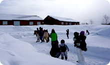 子どもたちは自然の雪原でのびのび遊び、とても楽しそうです。