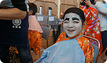 本物のメイクさん・衣裳さんが手掛け、サザエさんやバカ殿ちびまる子、アイドル、忍者などに変身する“扮装コーナー”。記念撮影のときは大人もみんな笑顔になっていました。