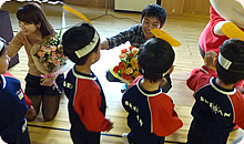 紙芝居の最後に「おしまい」と言ったら、子どもたちが全員で声を合わせて「ありがとうございました!!」とお礼を言ってくれたのには感激しました。先生の指示などは何もなかったのに…。みんなとってもお利口さん。