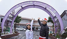 参加した酒主義久アナウンサーは自前のサンタ衣装を東京から持参で気合い十分。もう一人のキュートなサンタさんは岩手めんこいテレビの米澤かおりアナウンサー。
