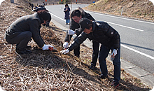 1月21日、雪が残る福島県広野町で有志18人が60本の桜の苗木を植えました。