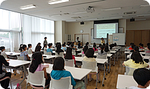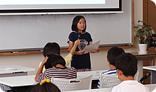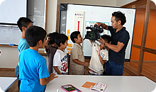私が進行役、そしてフジテレビCSR推進室のメンバーが、パワーポイントやホワイトボードを操作したり、子どもたちの脇についてサポートしながらチームで進めていきました。『あなせん』の授業で大切にしていることは、子どもたちが楽しく学べること。「アナウンサーの仕事について」はクイズ形式で、また「基礎発声」では独自に作ったテキストや早口言葉を取り入れて子どもたちの興味を刺激するように工夫しました。その結果、最初は固かった子どもたちも、授業の中ごろから次々に手を挙げて発言するようになり、教室全体の熱が増したように感じられました。