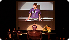 会場には、スピーチ出場者一人に対し、数人の大人からなるサポートチームがあります。