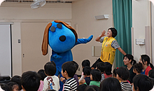 さあ、そんな不安をよそに、時間になって子どもたちが集まってきます。すると、不思議なことに、ひんやりとしていたホールがほんのりあたたかくなってくるではないですか。さすが、『子どもは体温が高いからなあ…』なんてことを思っていると、聞こえてくる「どっこくんは?」「どっこくんどこ!?」という声!すでにどっこくんのことを知ってくれていることに喜びを覚えながら、「どっこくんは来ていないのよ~」となだめて授業を開始します。