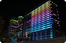 2015年度、社屋イルミネーション「GLITTER8」を活用し、社会課題への支援の意志を色によって発信する企画を通年で行いました。4月2日に世界自閉症デーを皮切りに、10の社会課題について知ってもらうきっかけを提供しました