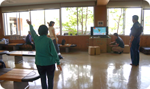2か所目に伺ったのは400人が寝泊まりする嘉島町の避難所でした。ここではNHKしか映らないテレビが1台だけおいてありました。我々がテレビを設置し、試しに食育出前授業「どっこくん」の体操DVDを流したら、自然発生的にテレビの周りに何人かの方が集まり、体を動かしてくれました。元気な音楽が流れたことで、小さな話し声しか聞こえなかった避難所が少し明るくなったように感じました。その後もテレビの前でじっと画面を見入り、「野球が見られる」とつぶやくお年寄りがいました。
