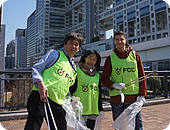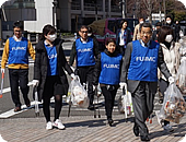 3月10日、春を思わせる陽気の中、第13回フジ・メディア・ホールディングス合同清掃活動が行われました。今回もグループ各社から有志が駆けつけ、17社から76人が参加しました。約45分間の清掃で、70リットルのゴミ袋20個分のゴミを回収しました。