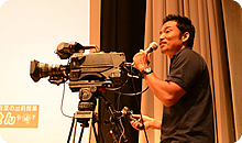 | スタジオカメラの説明をする峯カメラマン | ニュースの現場について解説する熱田カメラマン |