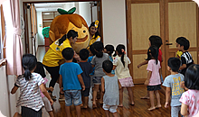どっこくんの紙芝居園児のみんなも真剣な表情で聞いてくれて、質問すると手がたくさん挙がりどの子にあてようか迷ってしまうくらい。「どっこくん体操」はみんな“予習済み”だったので、全員が全力で体を動かし、「ピーヒャラダンス」を私がレクチャーしながら一緒に踊ったりとあっという間に時間が来てしまいました。汗だくのまま次の園に向かいました。