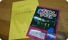 今回の授業は、学芸会に向けての音読に力を入れて欲しいとリクエストがあったため、基礎発声のトレーニングの後、実際学芸会 で使う の台本を読んでみることにしました。5年生の学芸会の演目は劇団四季のミュージカル「エルコスの祈り」。