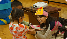 この最初の授業で要領をつかみ、次に向かったのは上益城郡嘉島町の嘉島幼稚園。