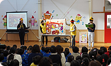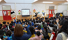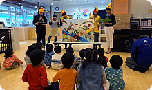 紙芝居はとても大きいのですが、それでも後ろの方の子は見えないだろうということで、今回はモニターにも映しました。その操作もしなければならないので、CSRのスタッフは今までにないくらい大忙し。