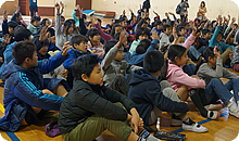 手をあげる子どもたち給食直後の午後のクラスは、元気いっぱい。