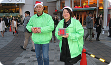 フジ・メディア・ホールディングスでは、各社共通のCSR活動として、毎年このイベントでお手伝いをしています。今年もグループから14社合わせて38人(フジテレビからは15人)がリスナーからの電話受けと街頭募金のお手伝いをしました。