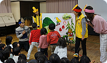最初は「うんち」という言葉に照れていたみんなが、中盤の紙芝居の時には自然に受け入れていました。たくさん食べて、「かっこいいうんち」をする事の大切さをわかってくれたのかな…