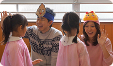 「つぎは、いしかわサンバだよ!おどれるひと~!?」と声をかけると、エネルギーのありあまった子どもたちは教室いっぱいに響き渡る元気な声で「ハイ!ハイ!いしかわさんしってるよ!おどれるよ!」と返してくれました。