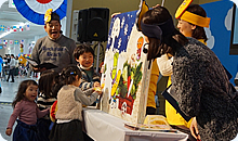 紙芝居では、途中「こごみやふきのとうなど季節の野菜を当てさせる」ところがあるのですが、ここが子どもたちの一番食いつくところ、わかる子もいれば、ノリだけで前に出てきて答える子、そして正解すると、会場のみんなで大きな拍手、子どもたちに笑顔があふれます。楽しみながら食育を学ぶ姿は、こちらも自然と笑顔になります。