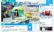 ライトアップについてニュース番組で取り上げ、キャスターもブルーのネクタイを着用。