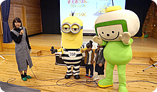 テレビ大分のキャラクター『トスキー』とミニオンズのリーダー『ケビン』も登場して子どもたちは大喜びでした。