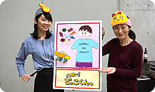 つづいては、その『どっこくん』の冒険紙芝居。春・夏・秋・冬の「旬の食べ物」を簡単に覚えられるような構成になっていて、小さい子どもたちも楽しんで参加していました。中には、大人でも形を思い浮かべることができないような食べ物もあって、お母さんたちも「どれだろうね~」など、子どもたちと一緒になって食べ物について学んでいました。