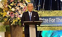 主催者として挨拶に立ったフジサンケイグループの日枝久代表は、「社会の持続的な発展のために、経済界・産業界が果たすべき環境問題解決の役割は、一段と重要になっており、私たちの叡智を結集していくことが求められています」と述べ、「フジサンケイグループは、この地球環境大賞顕彰制度を通じて、あらゆる分野で環境と経済、環境と社会の調和による豊かで活力あふれる国づくりに邁進していく」ことを表明しました。