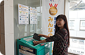 社員食堂の前に回収ボックスを設置東京オリンピック・パラリンピック競技大会の入賞メダルを、使用済みの小型家電から製作するプロジェクトに、フジテレビがメディアとして初めて参加し、不要になった携帯電話など小型家電の回収をスタートさせました。