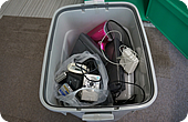 フジテレビでは、多くの社員が利用する社員食堂の前に回収ボックスを設置。 不要になった携帯、スマートフォン、デジタルカメラやパソコン、ケーブル類などの提供を呼びかけたところ、わずか2週間ほどで一杯になりました。