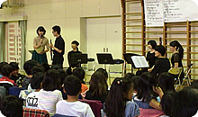普段行っている『あなせん』とは内容が異なり、「オペラの殿堂」としても有名な東京文化会館のご協力を得て、プロの演奏家による演奏と、アナウンサーによる朗読をミックスさせた授業内容です。演奏してくださったのは、「アンサンブル・ミクスト」という木管五重奏のグループ。
