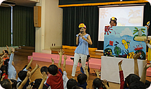 紙芝居を始めると、子どもたちは、もう夢中…!!