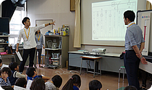 子どもたちが前のめりになるくらい、楽しく授業を進めていきます。