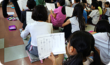 学芸会が迫るこの季節、きらきらした瞳の4年生のみんなに、音読のポイントとなる部分を学んでもらいました。
