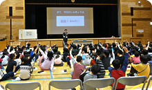 5時間目と6時間目の2コマをいただいて、体育館で、さぁ授業スタートです。