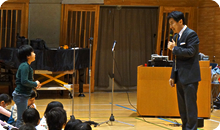 ここで、テキストを使って発声練習。