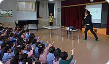 2月14日、千葉県浦安市の富岡幼稚園で食育出前授業『ハロー!どっこくん。』を開催しました。