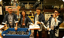 この日はフジテレビ59回目の開局記念日。今年周年を迎える関西テレビ、テレビ静岡、福島テレビ、新潟総合テレビ、そして来年周年を迎える秋田テレビ、鹿児島テレビの6局に加えて、初めて海外メンバーとしてメキシコが「ちょい呑み」に参加しました!日本と外交樹立130周年だそうです。そんなめでたい“周年”メンバーが集まって、各地選りすぐりの日本酒、焼酎、地ビール、テキーラ、ご当地フードが振る舞われました。3時間ずっと超満員状態で社員・スタッフが存分に会話に花を咲かせていました。