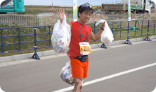 たくさん拾いました!そんななかゴミ袋をいくつも抱え、清掃しながら走るランナー(山形から来た高橋さん)にお話しを伺うことができました。