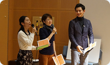 イベントでは、まず私たちアナウンサーの仕事を知ってもらおうということで、どんな仕事をしているのかの紹介や、会場のみなさんと一緒に発声練習・滑舌練習を行いました。子どもたちも大きな口を元気いっぱい開けて参加してくれました。