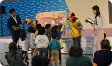 まずは、「どっこくん」と身近になってもらうために紙芝居をしました。子どもたちは、途中に出てくるクイズにも積極的に参加してくれて、とても嬉しかったです。